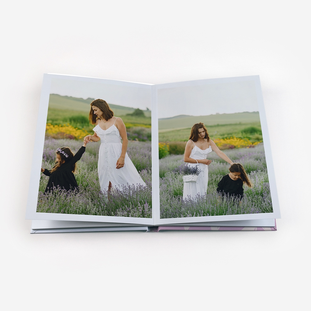 Os Álbuns de Fotos Dreambooks apresentam uma abertura panorâmica, com a possibilidade de colocar uma foto em destaque ocupando duas páginas. Desta forma, desfrutarás de uma visualização perfeita das tuas fotos, sem cortes ou partes escondidas.