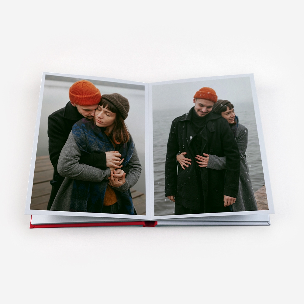 Os Álbuns de Fotos Dreambooks apresentam uma abertura panorâmica, com a possibilidade de colocar uma foto em destaque ocupando duas páginas. Desta forma, desfrutarás de uma visualização perfeita das tuas fotos, sem cortes ou partes escondidas.