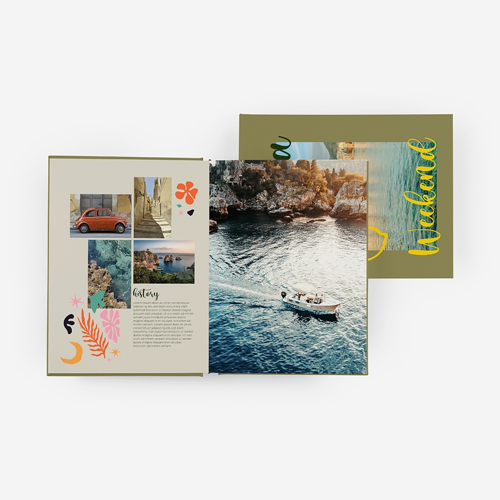 Os Álbuns de Fotos Dreambooks apresentam uma abertura panorâmica, com a possibilidade de colocar uma foto em destaque ocupando duas páginas. Desta forma, desfrutarás de uma visualização perfeita das tuas fotos, sem cortes ou partes escondidas.