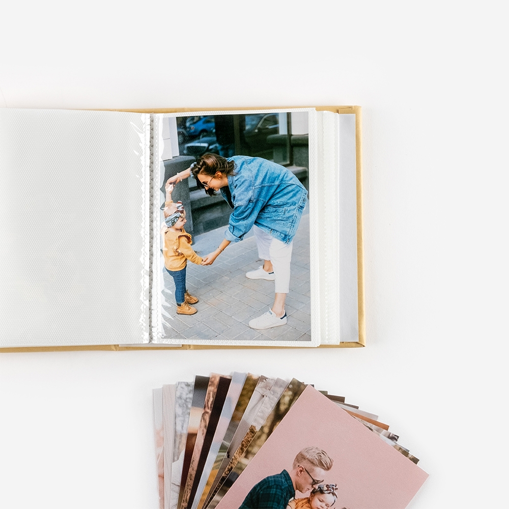 O álbum é de bolsas - fáceis de usar e protegem as tuas fotos contra arranhões e outros danos que possam ocorrer ao longo do tempo.