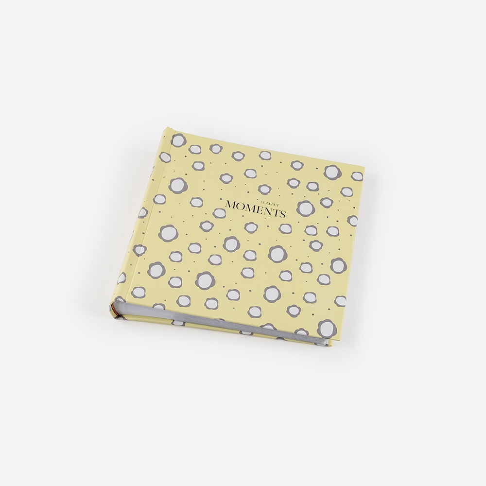 Álbum de cartão resistente, com folhas em branco. Estas possuem linhas para que possas escrever mensagens ao lado das tuas fotografias.