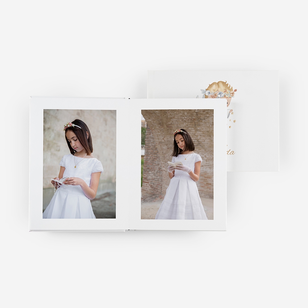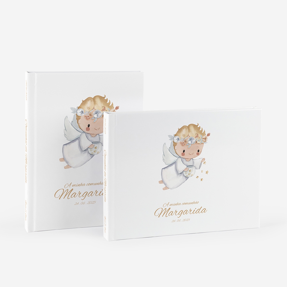 Este álbum é ideal para os mais novos e perfeito para quem quer guardar a comunhão de forma simples, mas com significado. Personalizar com nomes, datas e fotos. E pode também ser uma bonita lembrança para oferecer à família.