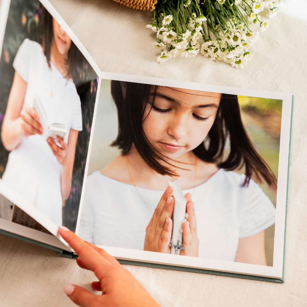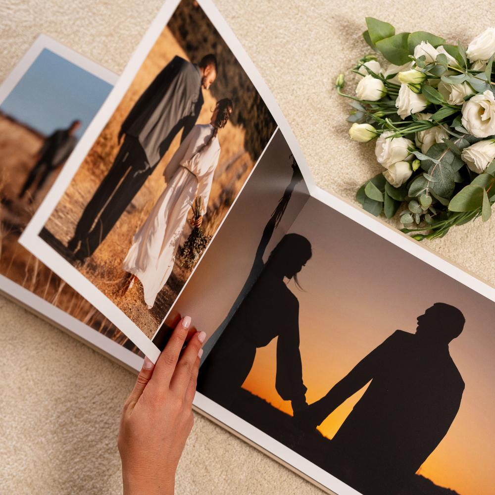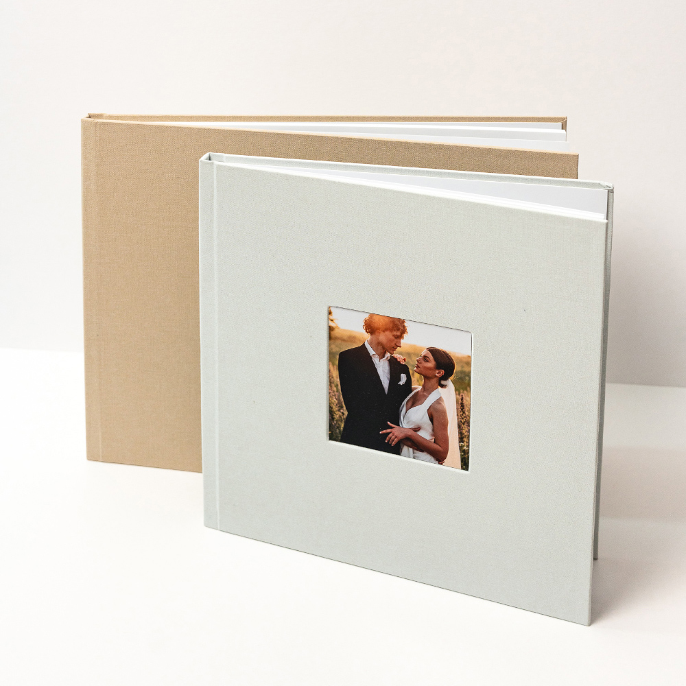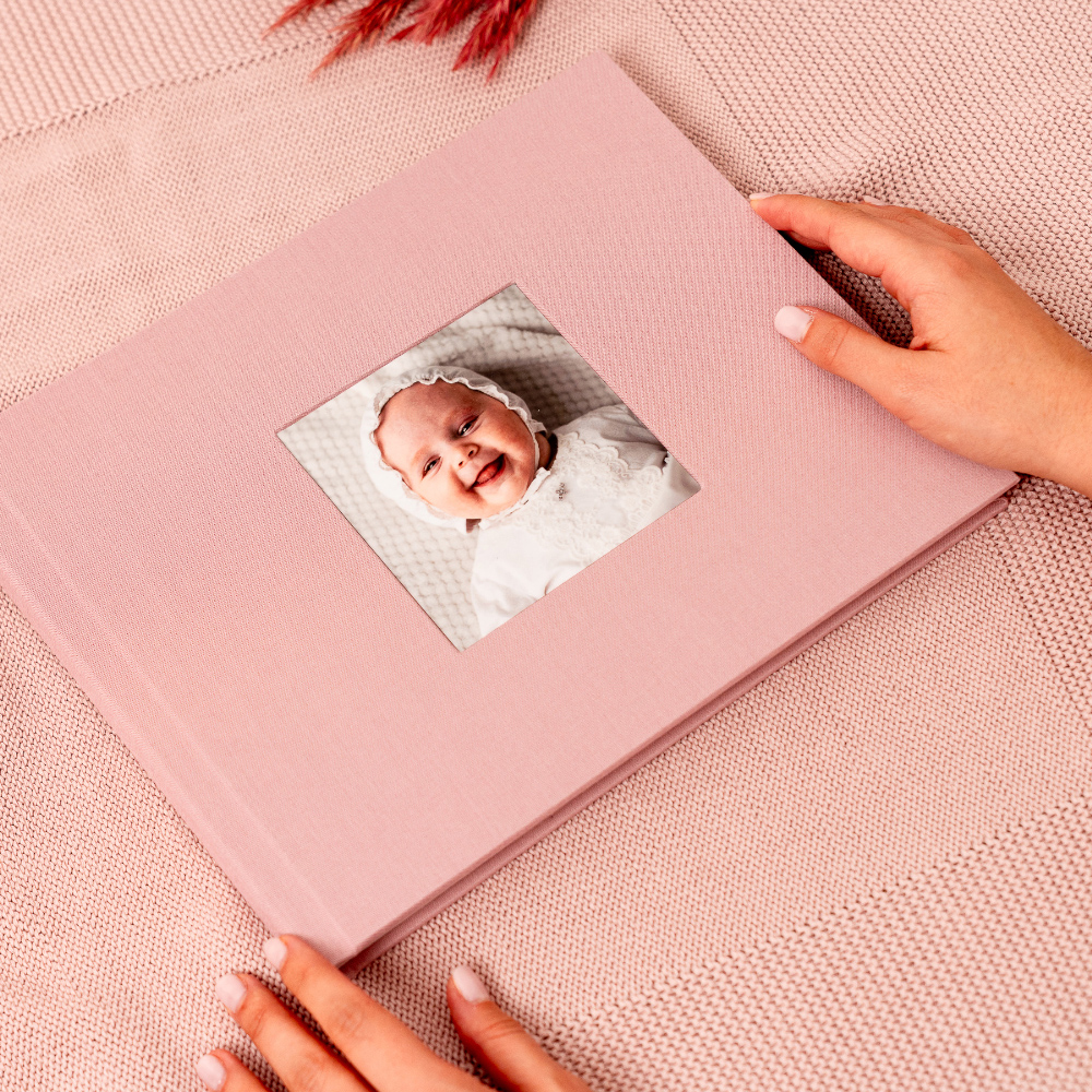 No modelo Cameo, a capa abre uma janela para a emoção. A tua fotografia favorita é integrada de forma permanente na capa em tecido, criando um leve relevo que a transforma no coração do álbum e num convite imediato para descobrir as memórias que guarda no interior.