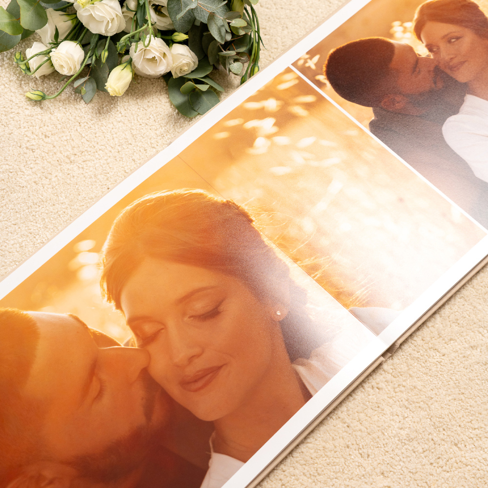 Estes álbuns de fotos foram criados a pensar nas tuas datas mais importantes. Se procuras um álbum de casamento personalizado, a Signature oferece a possibilidade de teres uma capa que já apresenta a história ainda antes da primeira página. Para o álbum de batizado, a personalização com stamping torna-se ideal para marcar o nome e a data do dia. Para um álbum de comunhão, a janela fotográfica do Cameo permite destacar o retrato que melhor representa a celebração. Podes também criar um álbum de fotos de família que junta várias gerações ou um álbum de viagem que guarda cada aventura vivida.