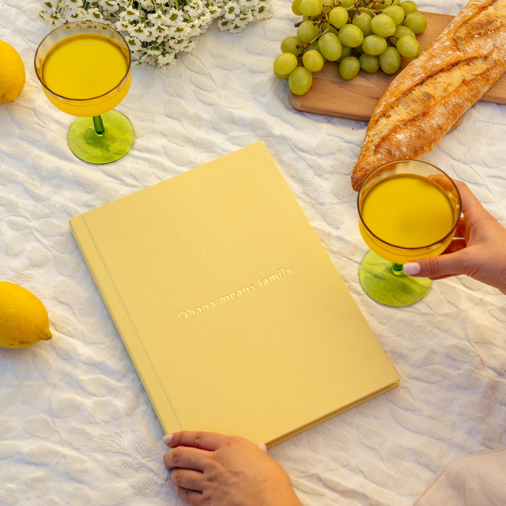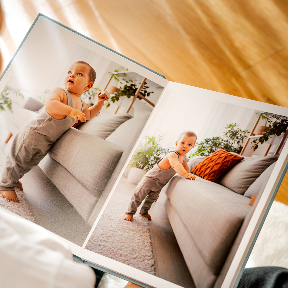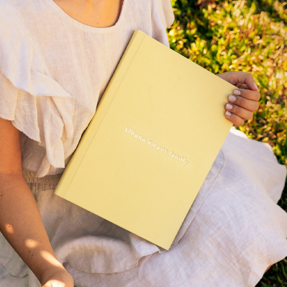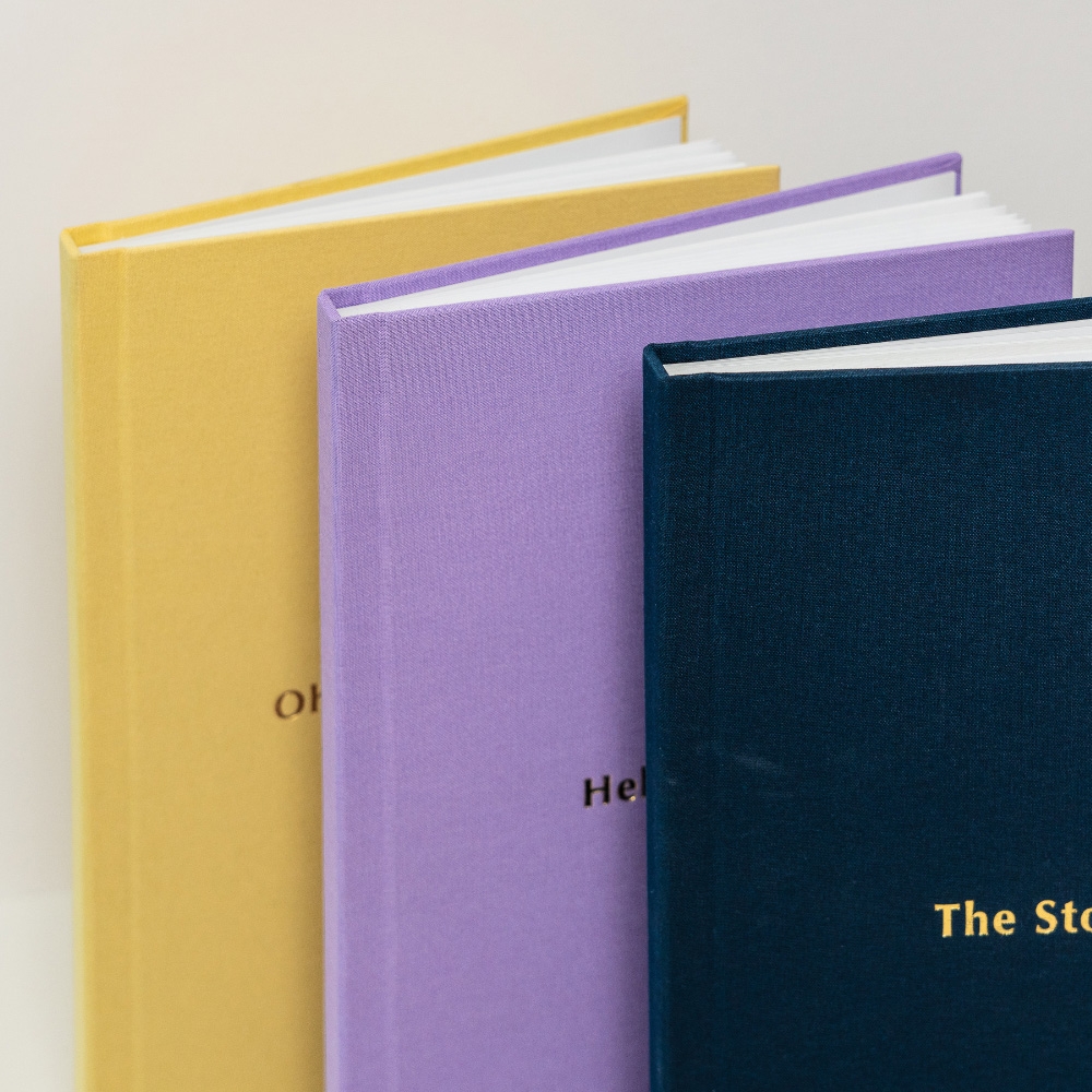 No modelo Inscription, a capa ganha uma assinatura própria. A técnica de stamping grava nomes, datas ou pequenas frases diretamente no tecido, criando um relevo subtil e elegante que transforma o álbum num objeto ainda mais ligado à história que guarda.