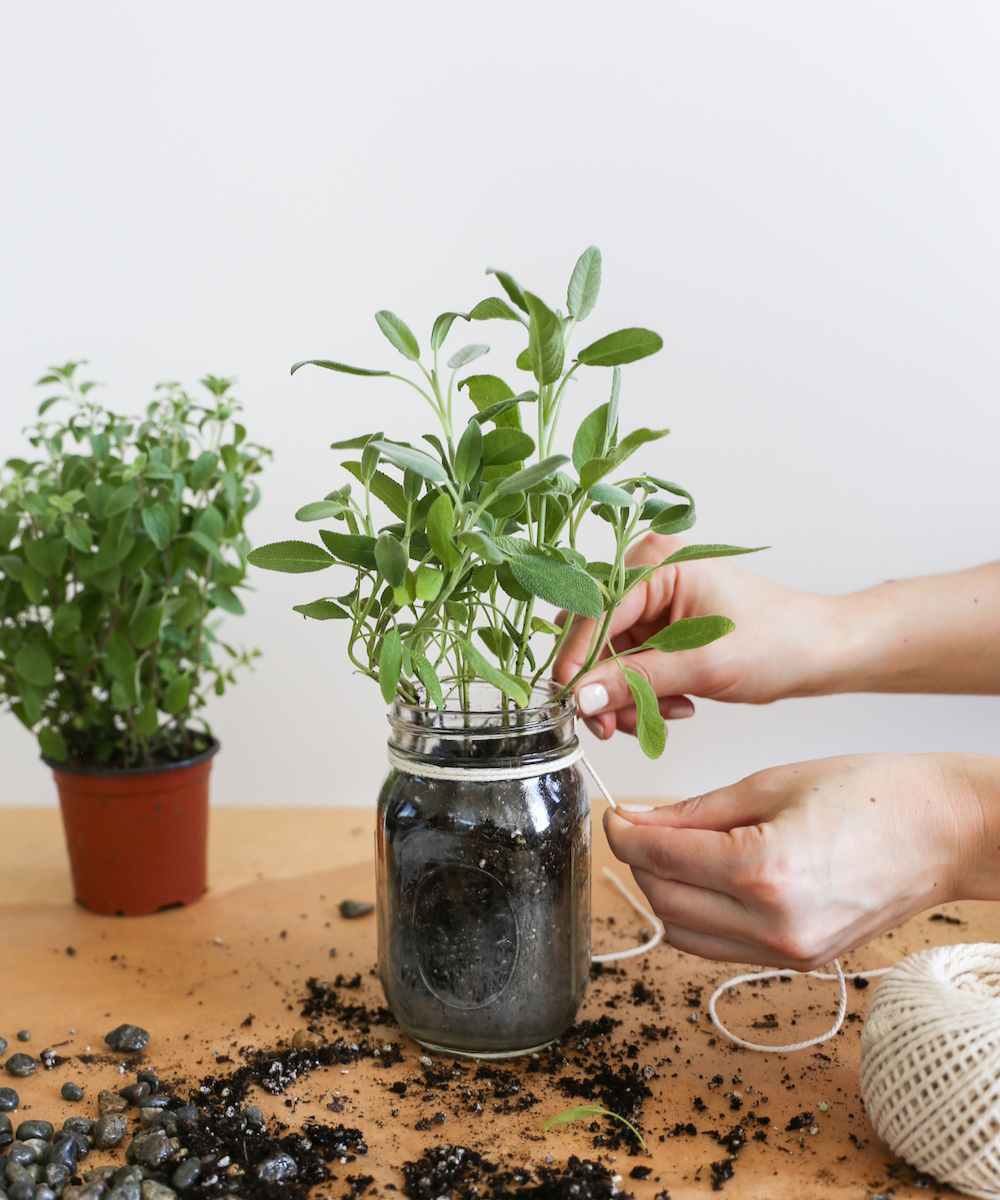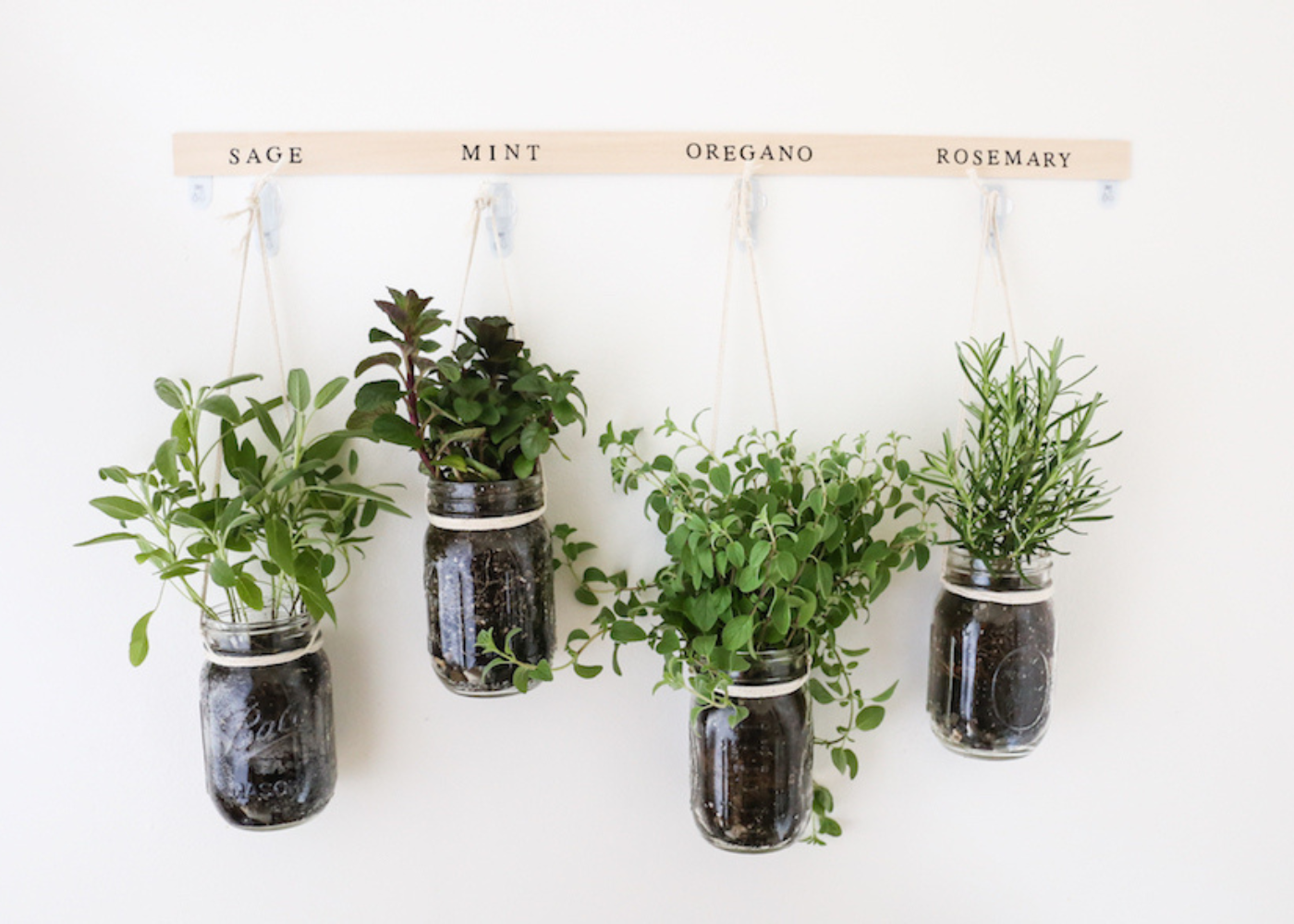 8. Mini Jardim Suspenso com Plantas Aromáticas
