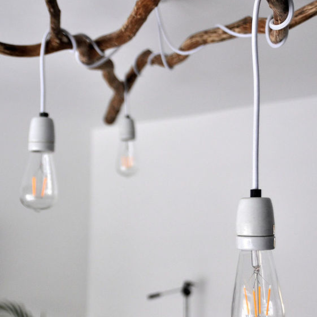 Já pensaste em criar a tua própria instalação de luz usando ramos de árvores? Recolhe ramos de diferentes tamanhos e organiza-os de forma a criar uma estrutura suspensa, onde possas enrolar luzes LED. Este projeto pode ser colocado sobre a mesa de jantar, criando um ambiente de conto de fadas, ou mesmo no quarto, como um ponto de luz suave e original.