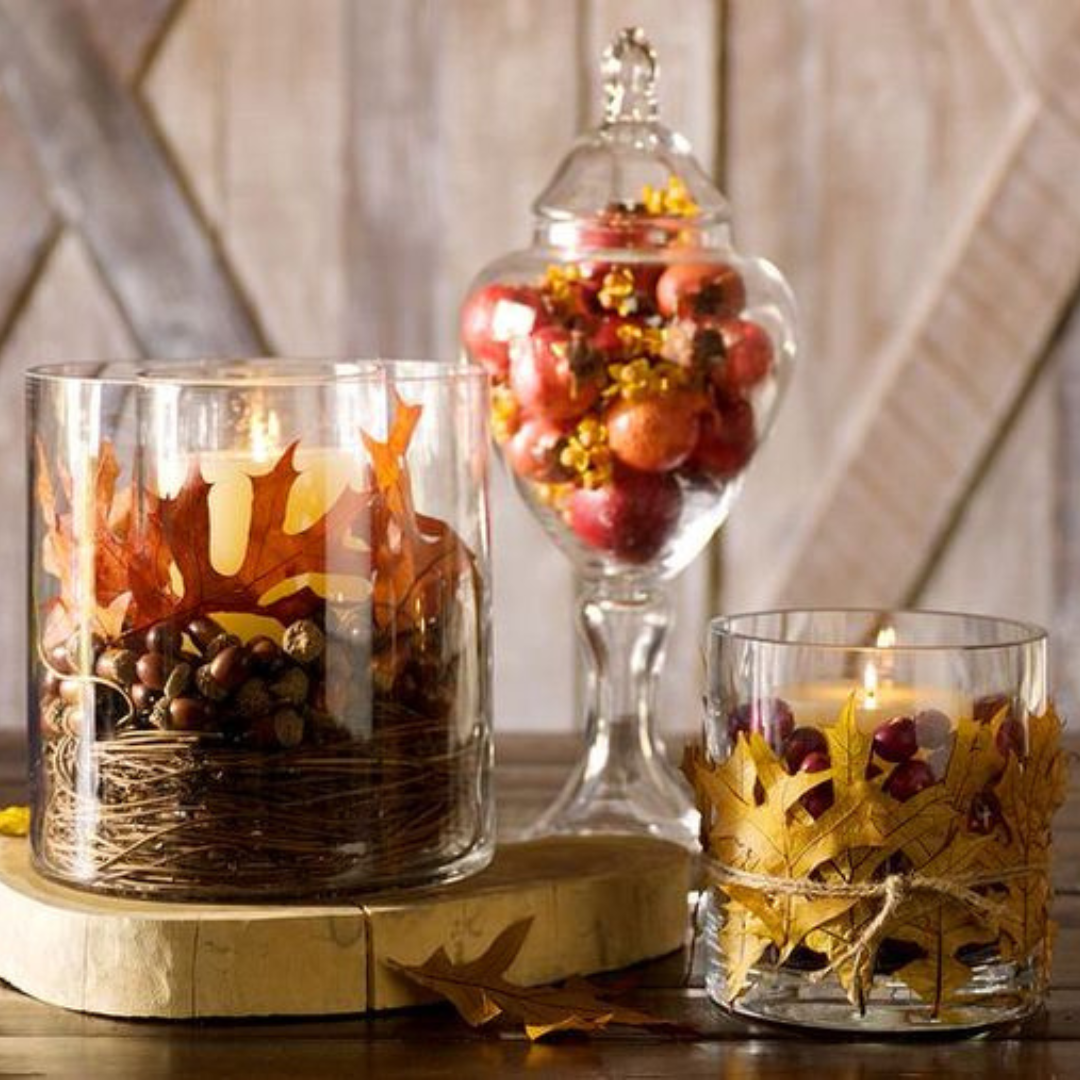 À medida que os dias se tornam mais curtos, a iluminação em casa ganha ainda mais importância. Velas, luzes suaves e lâmpadas de mesa são ótimas para criar um ambiente confortável e acolhedor nas noites de outono. Que tal experimentares fazer os teus próprios castiçais? Podes utilizar frascos de vidro antigos, enfeitá-los com cordas e folhas secas e criar lanternas que espalhem uma luz suave pela casa.