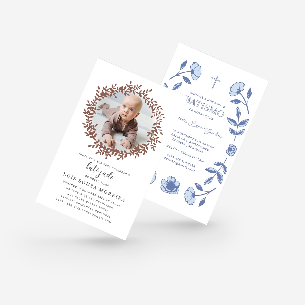 O Batizado é uma das datas mais especiais do crescimento dos filhos e, por isso, é motivo para celebrar com a família e amigos mais próximos. Nestas celebrações todos os detalhes contam, por isso criamos modelos personalizáveis para os convites de batizado. Cria convites de qualidade online com a opção de adicionar um envelope colorido e fechar com lacre.