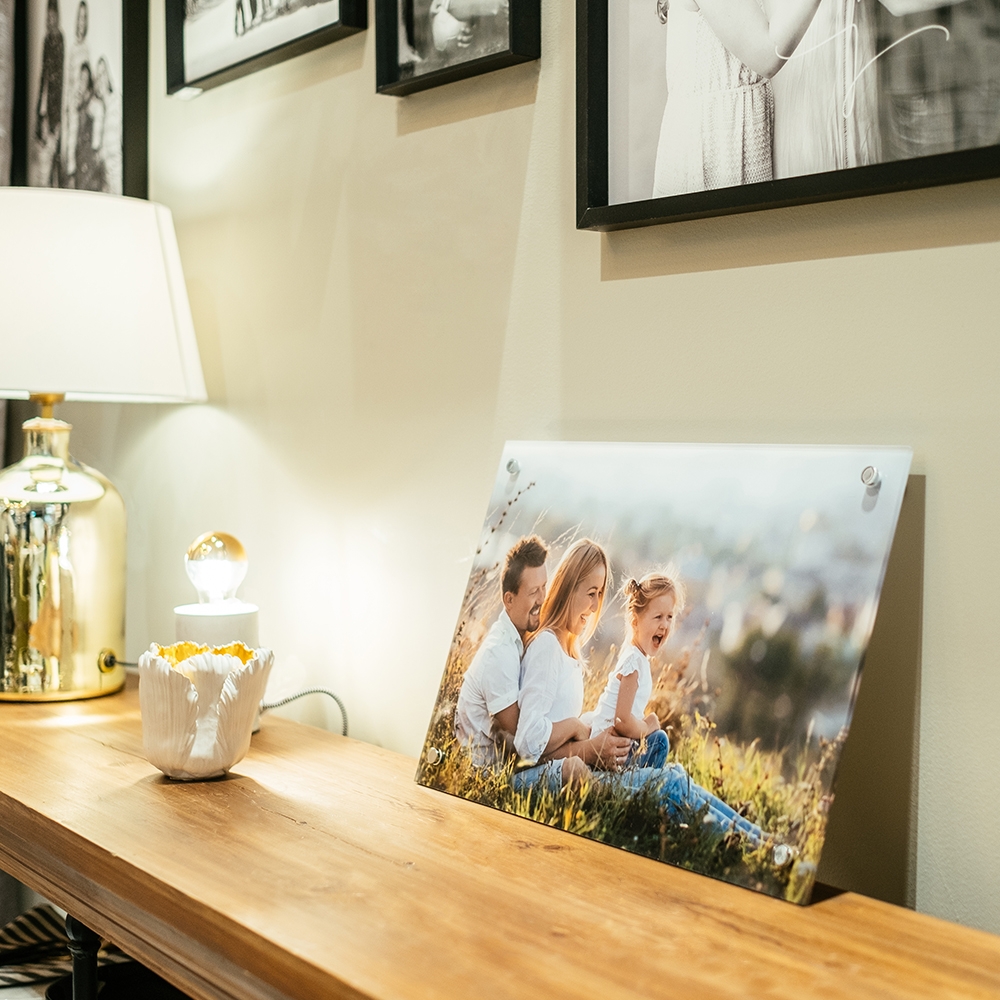 Os quadros em Acrílico são uma alternativa interessante às habituais molduras, com um bonito toque de modernidade que adicionam elegância à imagem, atribuindo-lhe, ao mesmo tempo, uma força que marcará presença em qualquer espaço. Os quadros em Acrílico para além de proporcionarem um efeito de profundidade que enaltece as tuas imagens, garantem mais brilho, nitidez e durabilidade à impressão fotográfica. São peças absolutamente imprescindíveis para quem gosta de jogar com diferentes formatos e materiais, na criação dos murais para a sala de estar ou sala de jantar. Com o nosso Editor online, imprimir fotografias em quadros para a casa é fácil, rápido e cómodo. Basta selecionares o quadro, fazeres upload da tua fotografia preferida, personalizares a imagem, selecionares uma morada para a entrega e finalizares a tua encomenda no Editor.