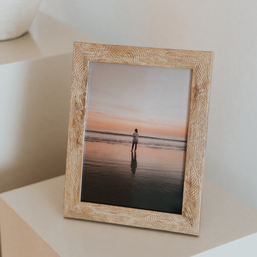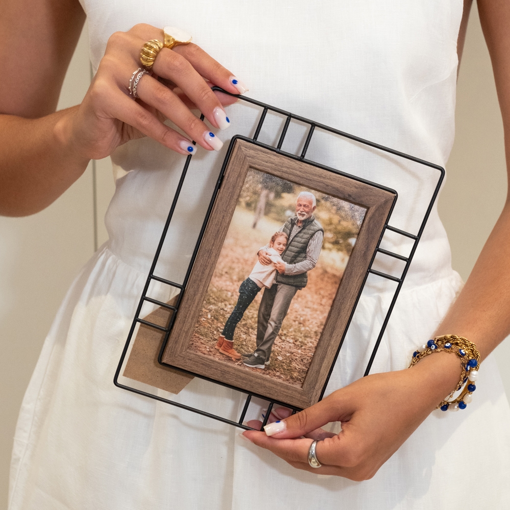 Moldura de alta qualidade, fabricada em madeira, garantindo durabilidade e um acabamento perfeito para destacar as tuas fotos. A espessura da moldura é 3 cm.