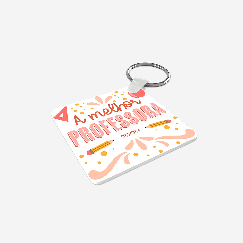 Produzido em acrílico resistente, este porta-chaves combina leveza e durabilidade. A personalização é feita por sublimação térmica nos dois lados, garantindo cores vivas e detalhes nítidos.